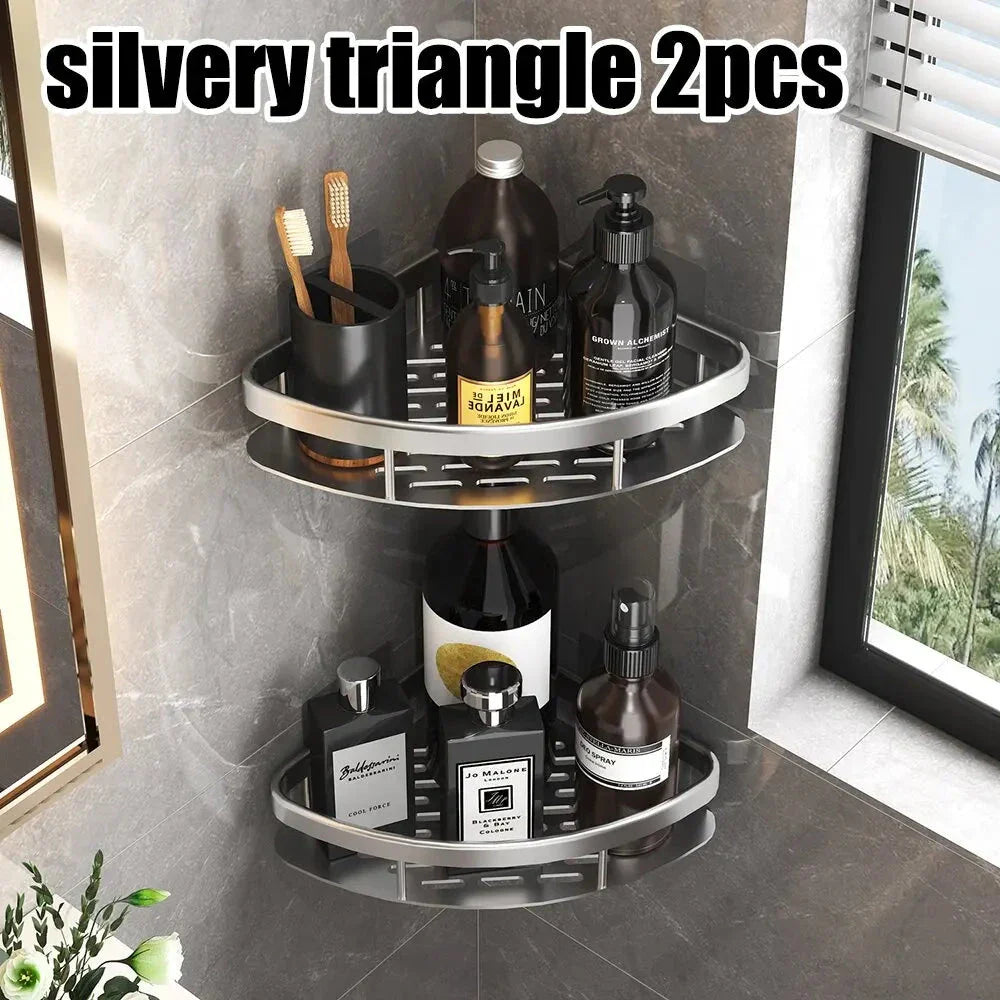 No-drill corner bathroom shelf – 2-tier, space-saving, matte finish